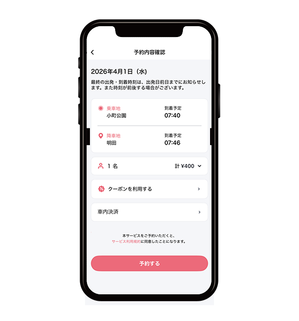 - 予約のない便は運行されません。(平日のみの運行です)