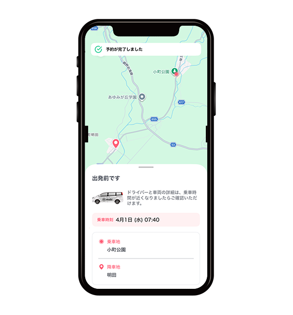 乗車予定時刻が表示されたら予約が完了。※ご乗車される際にドライバーにお名前をお伝えください。